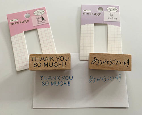 画像の”THANK YOU SO MUCH”、”ありがとうございます”の文字のみの他にイラスト付きなども販売されています