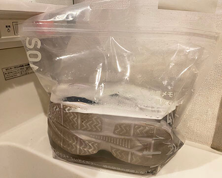 バケツなどに靴を入れてつけ置きする時、浮力で靴が浮いてきて浸かってない部分があったりするとモヤっとしますよね、袋の場合空気をキチンと抜いておけば浮きにくくなりました