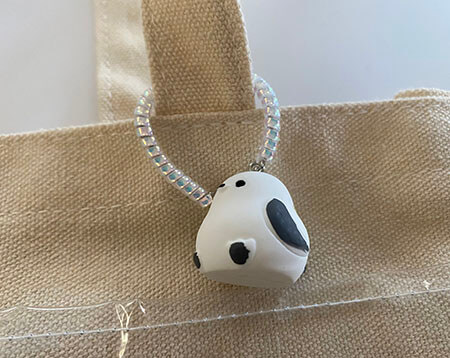 ダイソー ケーブルデコレーションカラー鞄にボールチェーンでチャームをつけていると雨で濡れて、錆びて、その錆が鞄について着色汚れに!という事が起きる事も