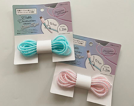 セリアでは以前から”ケーブルデコレーション”が販売されていましたが、オーロラカラーだけでなくブルー・ピンクの色違いバージョンも増えています