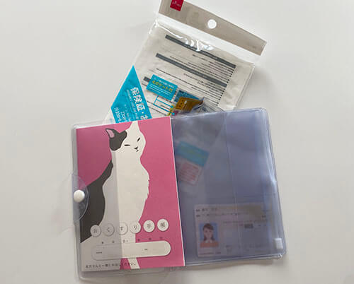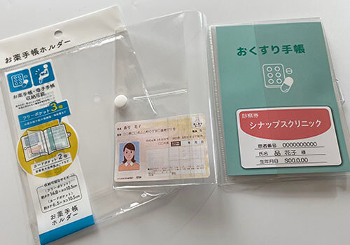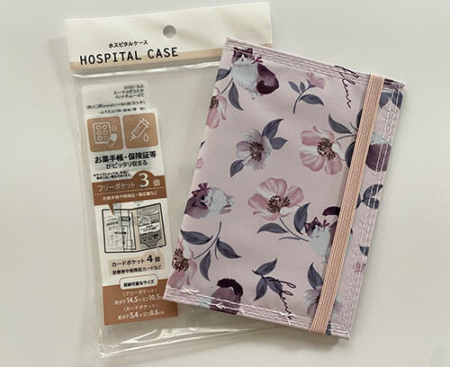 受診に必要な物を個々にまとめておくとでかける時に1つもっていくだけで忘れ物を防げます、色々なケースがありますが「お薬手帳ケース」はカードケースがついている物も多いのでまとめやすくなっています