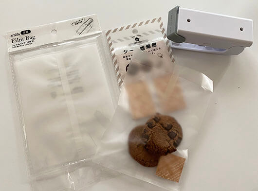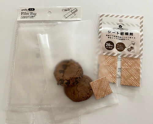 手作りクッキーなどをラッピングしてプレゼントする時は”乾燥剤”も一緒に入れておくと食感がかわりにくくなります、乾燥剤もセリアで販売されているので使う予定がある場合は一緒に購入しておくと便利です