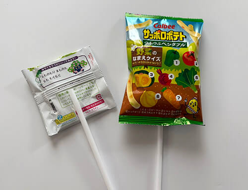 セリア ブーケスリーブ1.下準備でお菓子の裏側にストローを貼り付ける