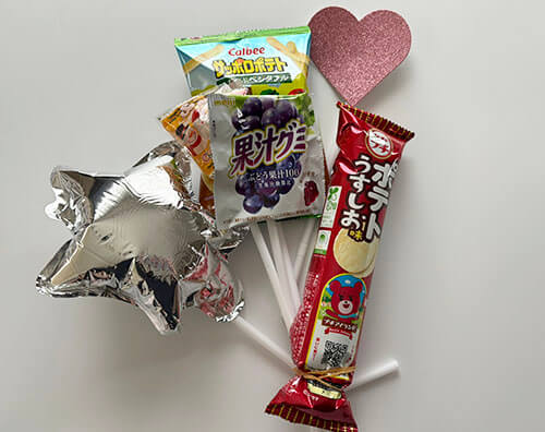 お菓子の種類を変えたり、モールで花を作ったものを入れたり様々なアレンジができますね