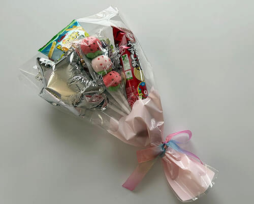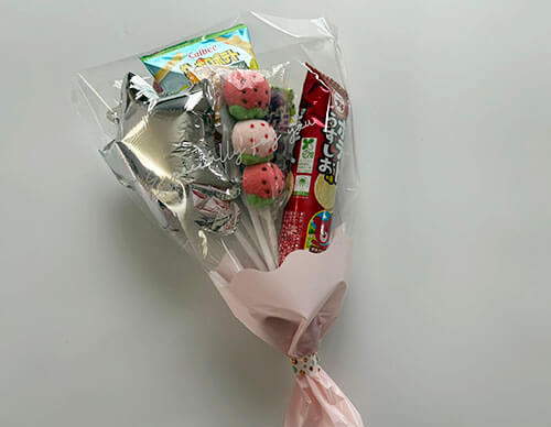お菓子を花束のようにラッピングした”お菓子ブーケ”なら花より団子世代の”ブーケの中身がお菓子だったらいいのにな”を実現する事ができます