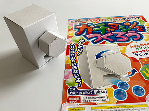 セリア ガチャマシンをつくろうパッケージに”のりもハサミもいらないよ”と書かれている通り、台紙から外す&折るだけで完成します