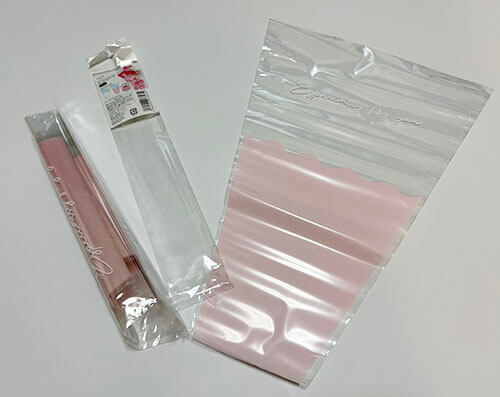 ラッピングフィルムが筒形になっているので中に入れるだけでブーケのラッピングができます
