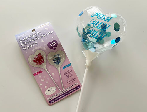 セリア コンフェッティスティックバルーン「コンフェッティスティックバルーン ハート」(110円)