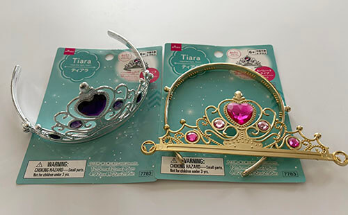 100均「ダイソー」で”ティアラ”はオモチャ的な物からヘアアクセサリーまでいくつかの種類が販売されています