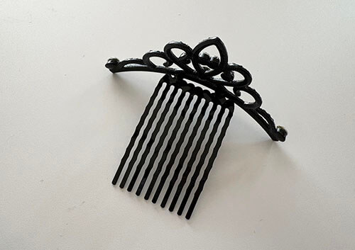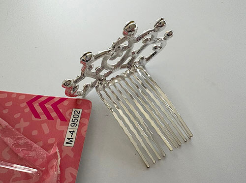 ダイソー ミニティアラピンミニティアラピンを後ろから見るとこのようになっています、櫛状になっているのでこの部分をセットした髪の毛にさして固定します